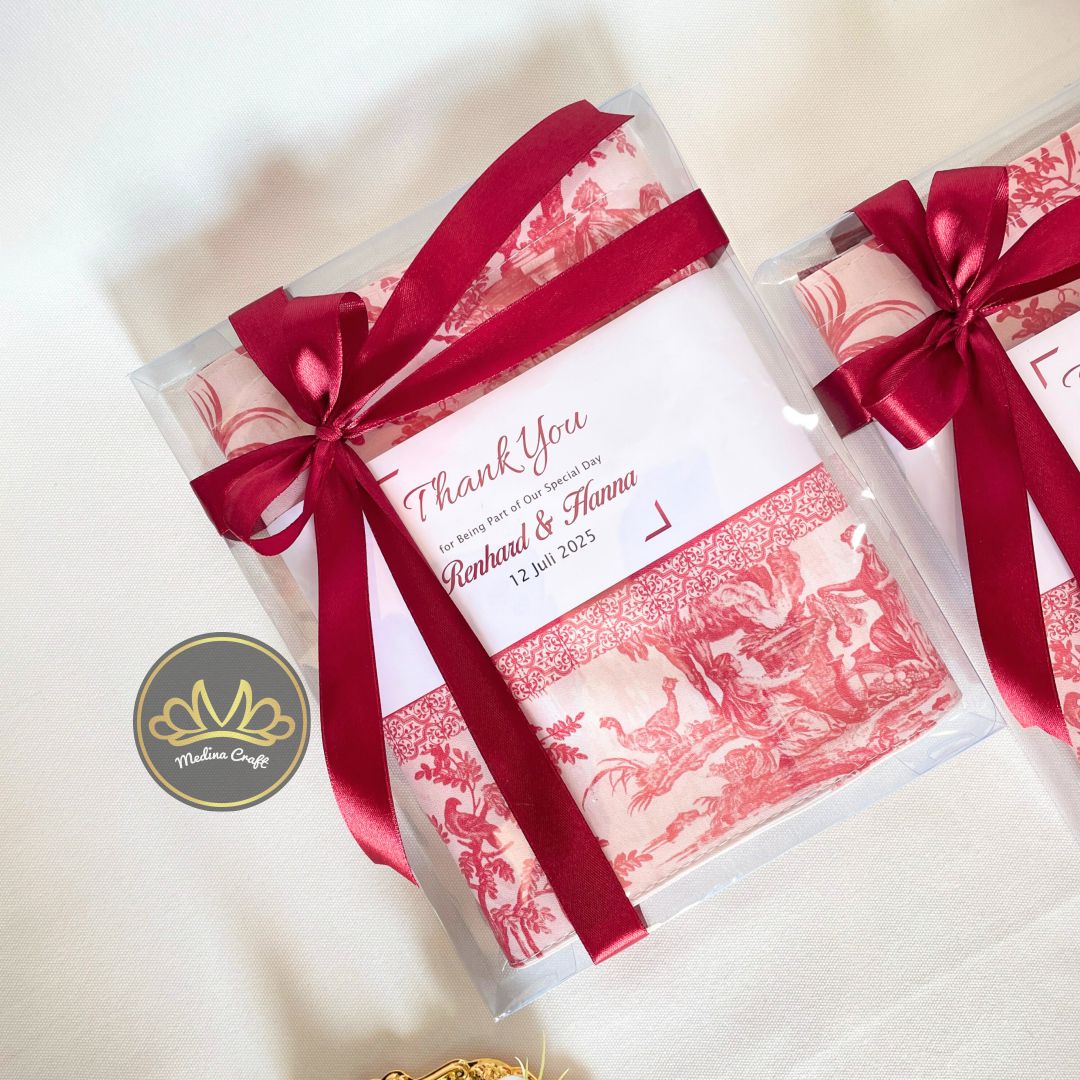Packaging Clara Bag adalah eksta packaging untuk tas souvenir kami produksi yang cocok untuk digunakan dalam berbagai acara, seperti pernikahan, acara resmi, dan lan-lain. Kami produksi sendiri dengan memperhatikan kualitas serta harga yang affordable. Sudah termasuk tali satin dan kartu ucapan di setiap box packagingnya.